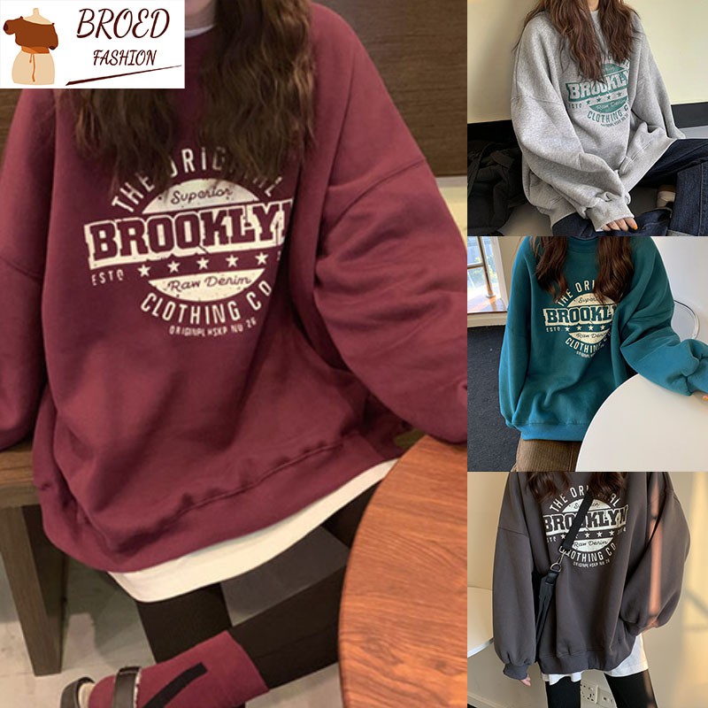 Áo Sweater Dáng Rộng Cổ Tròn In Chữ Xinh Xắn Hợp Thời Trang Cho Nữ free ship