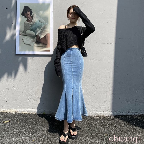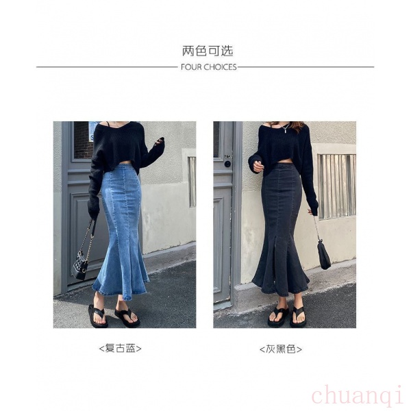 Chân váy jean Đuôi Cá Lưng Cao Dáng Chữ A Thời Trang Xuân Hè free ship