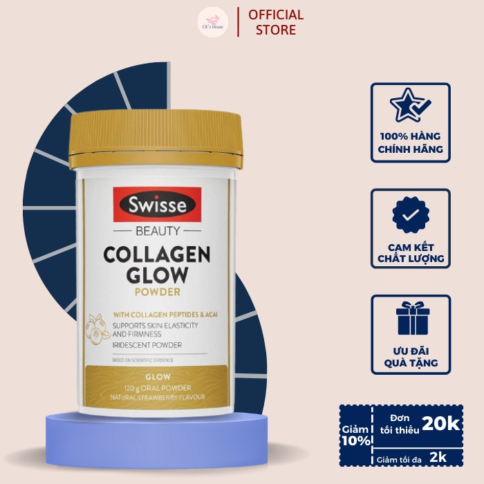[BILL ÚC] Bột Collagen Glow, Balance, Renew 120g Swisse Úc giúp trắng và căng bóng da free ship